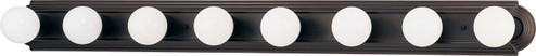 Eight Light Vanity by Nuvo Lighting in Mahogany Bronze finish Satco's 8-light, 48-inch racetrack vanity is an elegant lighting solution for the home. Illuminate your bathroom, hallway or other interior spaces with the perfect combination of form and function. Designed to cast a soft white light over a wide area, this fixture, available in polished chrome, brushed nickel, old bronze, polished brass, mahogany bronze and traditional white finishes is sure to impress your guests with its style and elegance. {ADDITIONAL FINISH INFORMATION: Mahogany Bronze}
